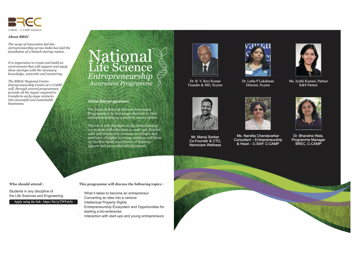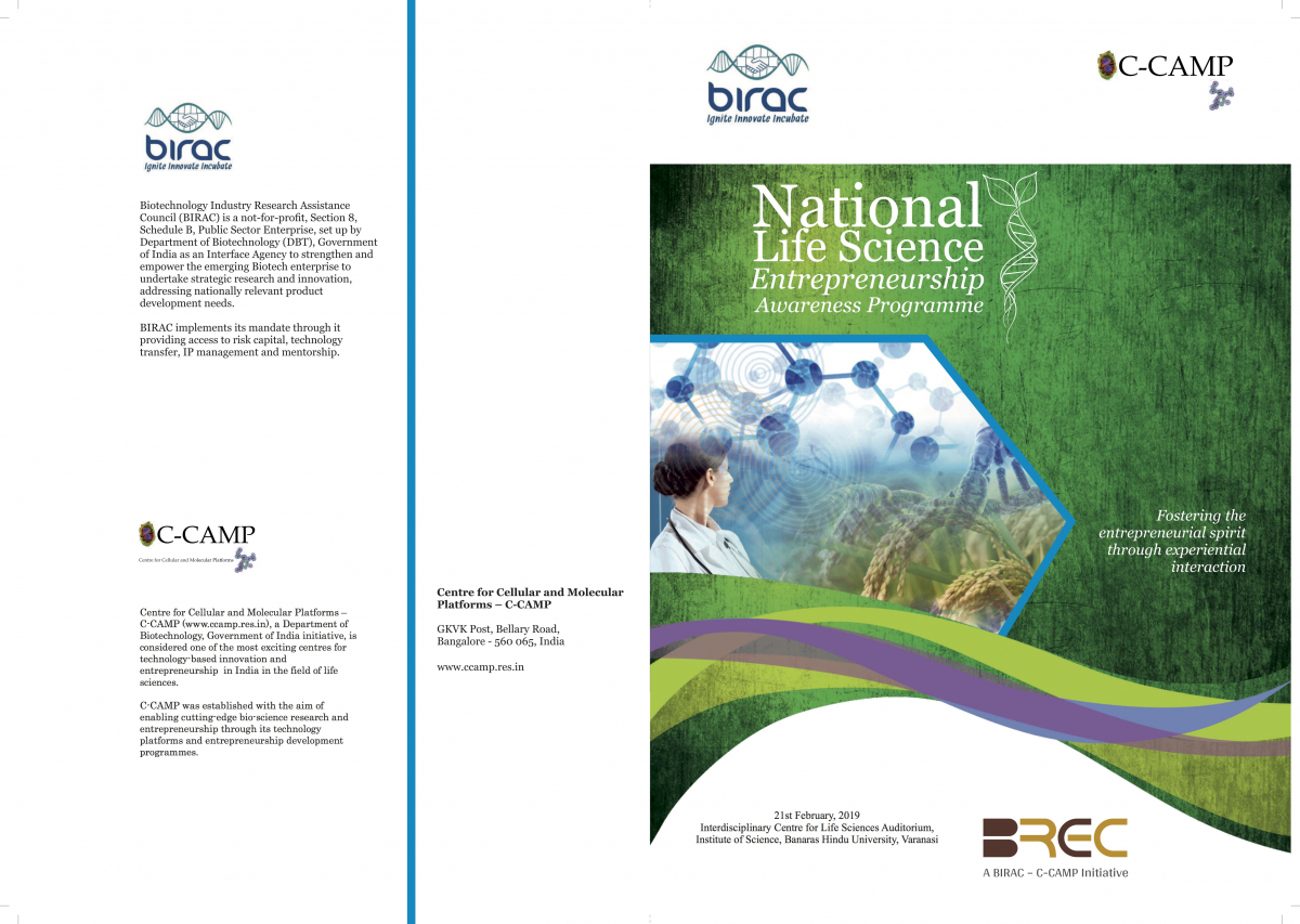 CCAMP under its BREC centre is organizing its first National Life Science Entrepreneurship Awareness Programme of 2019 at Benaras Hindu University, (BHU, Varanasi).