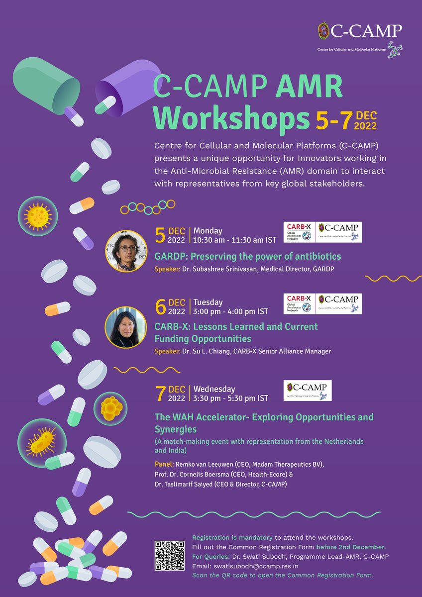 Three days AMR Workshops organized by C-CAMP in partnership with CARB-X, GARDP & Embassy of the Netherlands in India