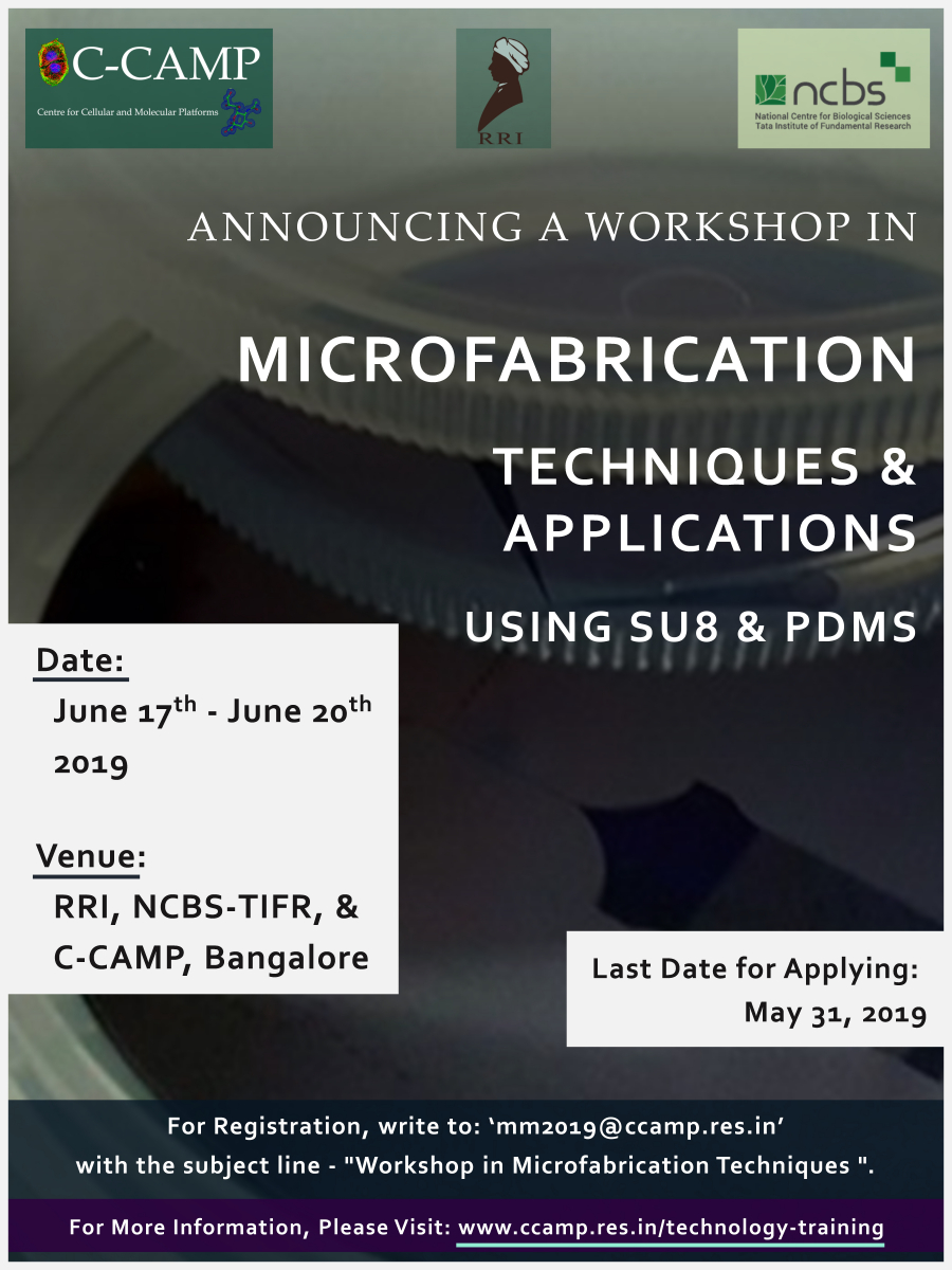 For details and registration, write to: mm2019 [AT] ccamp. res. in with subject line: "Workshop in Microfabrication Techniques ".