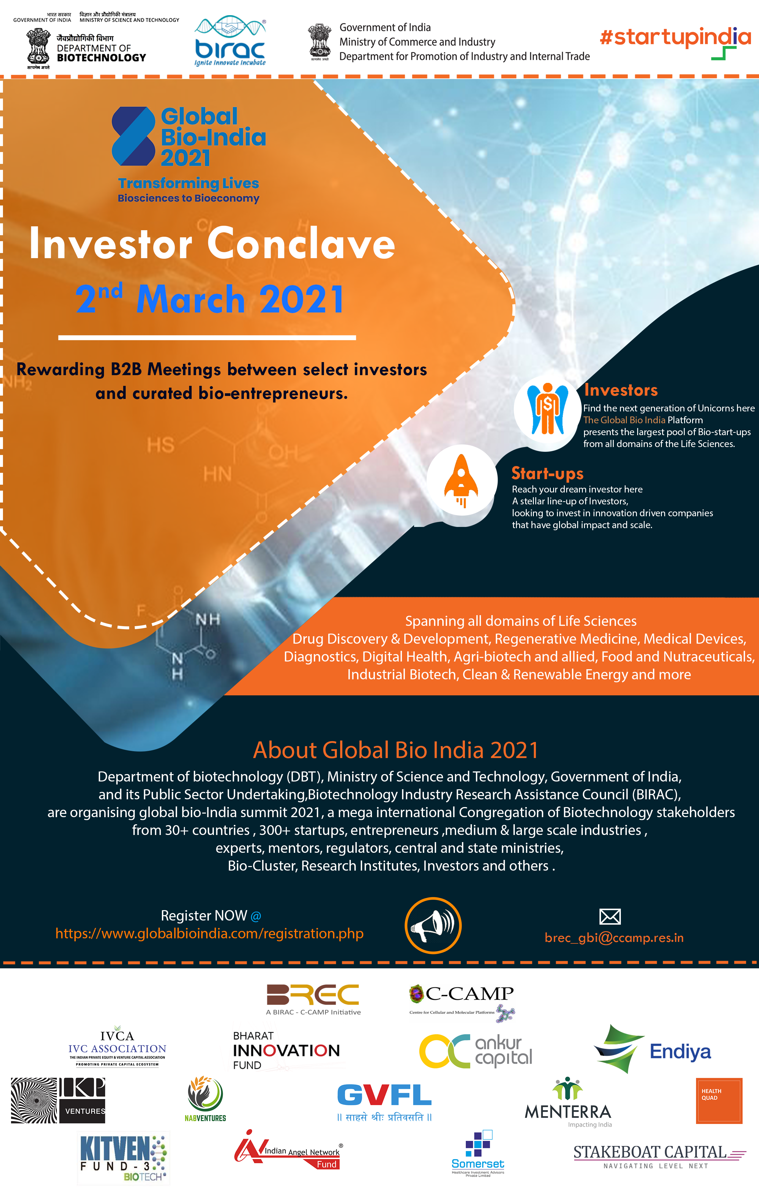 1) Registration MUST as a delegate for Global Bio India for both startups & interested investors! https://www.globalbioindia.com/registration.php