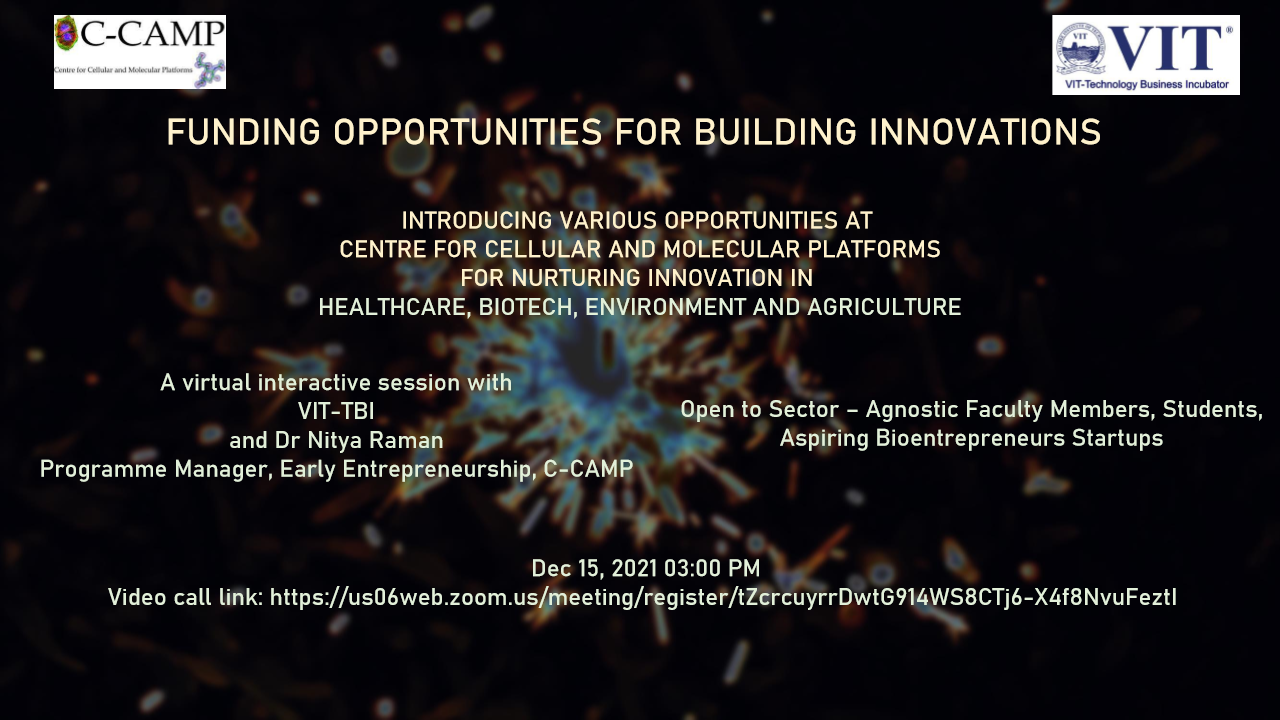 C-CAMP in partnership with VIT Technology Business Incubator (TBI), Vellore Institute of Technology, Tamil Nadu is delighted to bring an online interaction session
