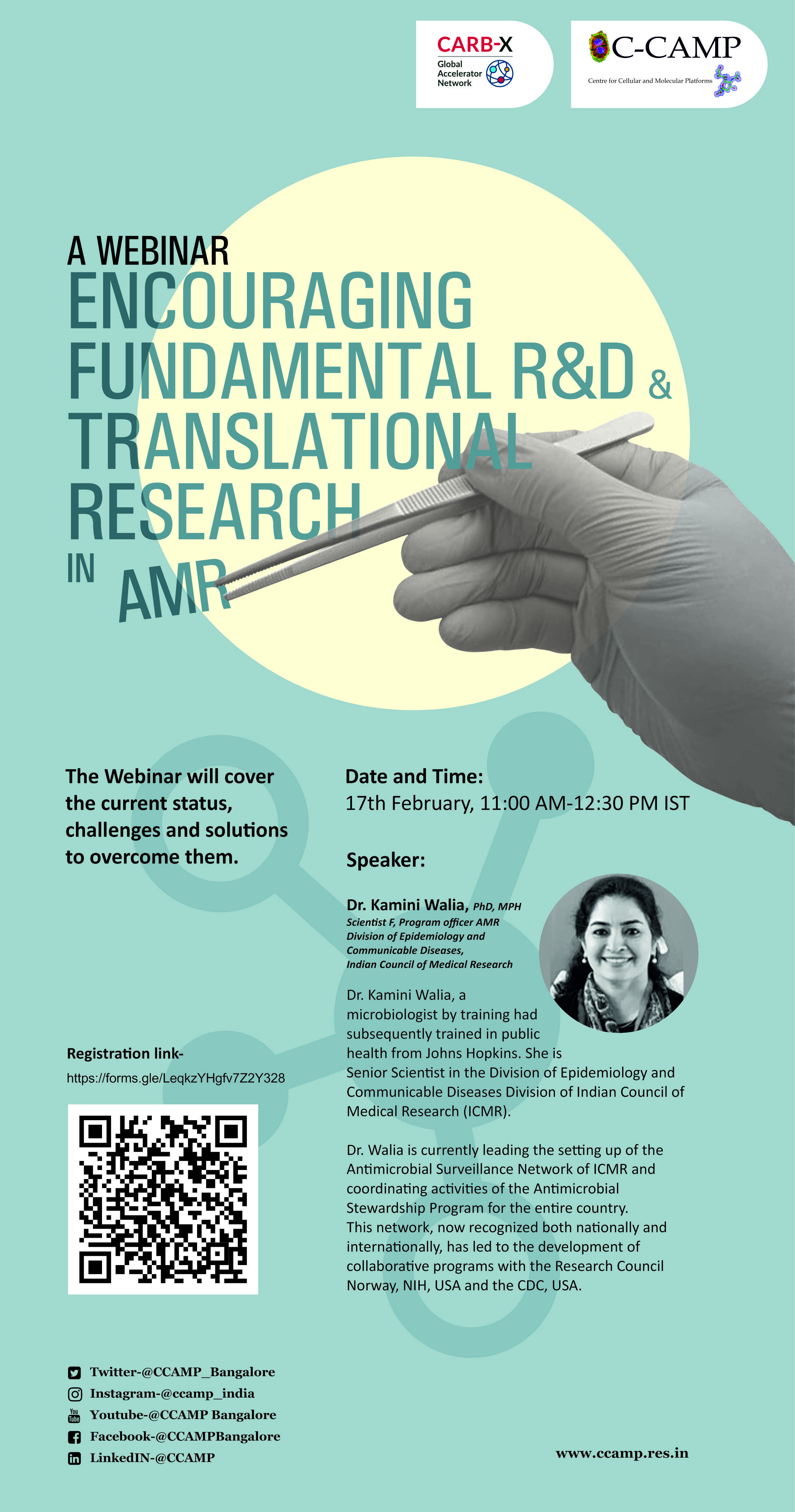 C-CAMP and CARB-X bring a webinar to address the need for fundamental and translational research for combating Antimicrobial Resistance and how supportive policies/ecosystems are building up in India,