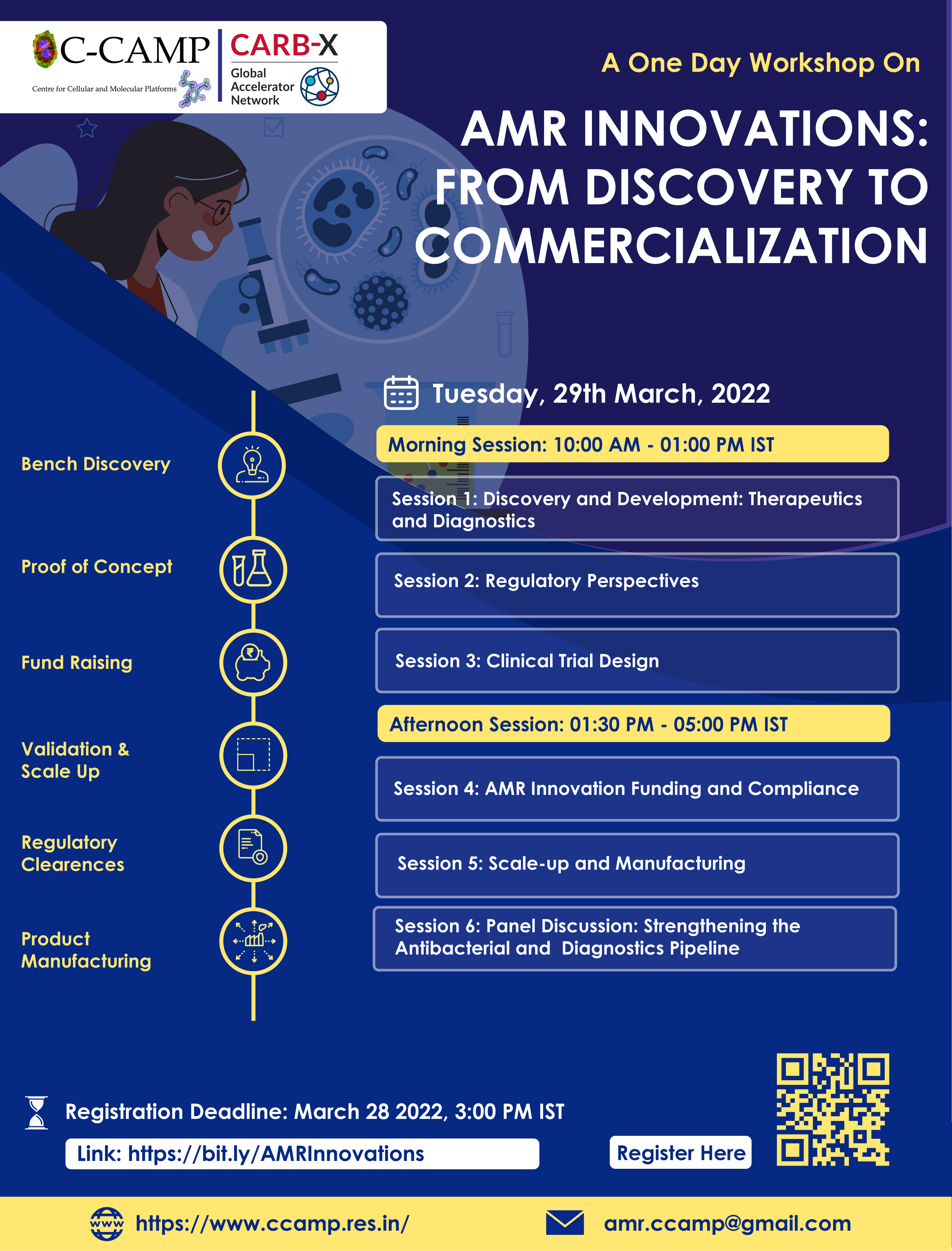 C-CAMP with CARB-X is holding a one-day workshop on AMR Innovations: From Discovery to Commercialization